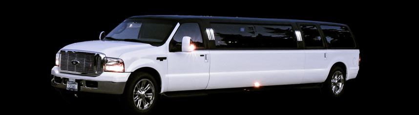 Our awesome Ford Excursion SUV Stretch seats up to 13 passengers and is wider than any other limousine in the market. Enjoythe very spacious interior, complete with soft leather seats. Enjoy the amenities like ice bins, glasses and flutes, a CD sound system, DVD player, TV and fiber optic lighting, AUX cable hookup, and privacy screen.